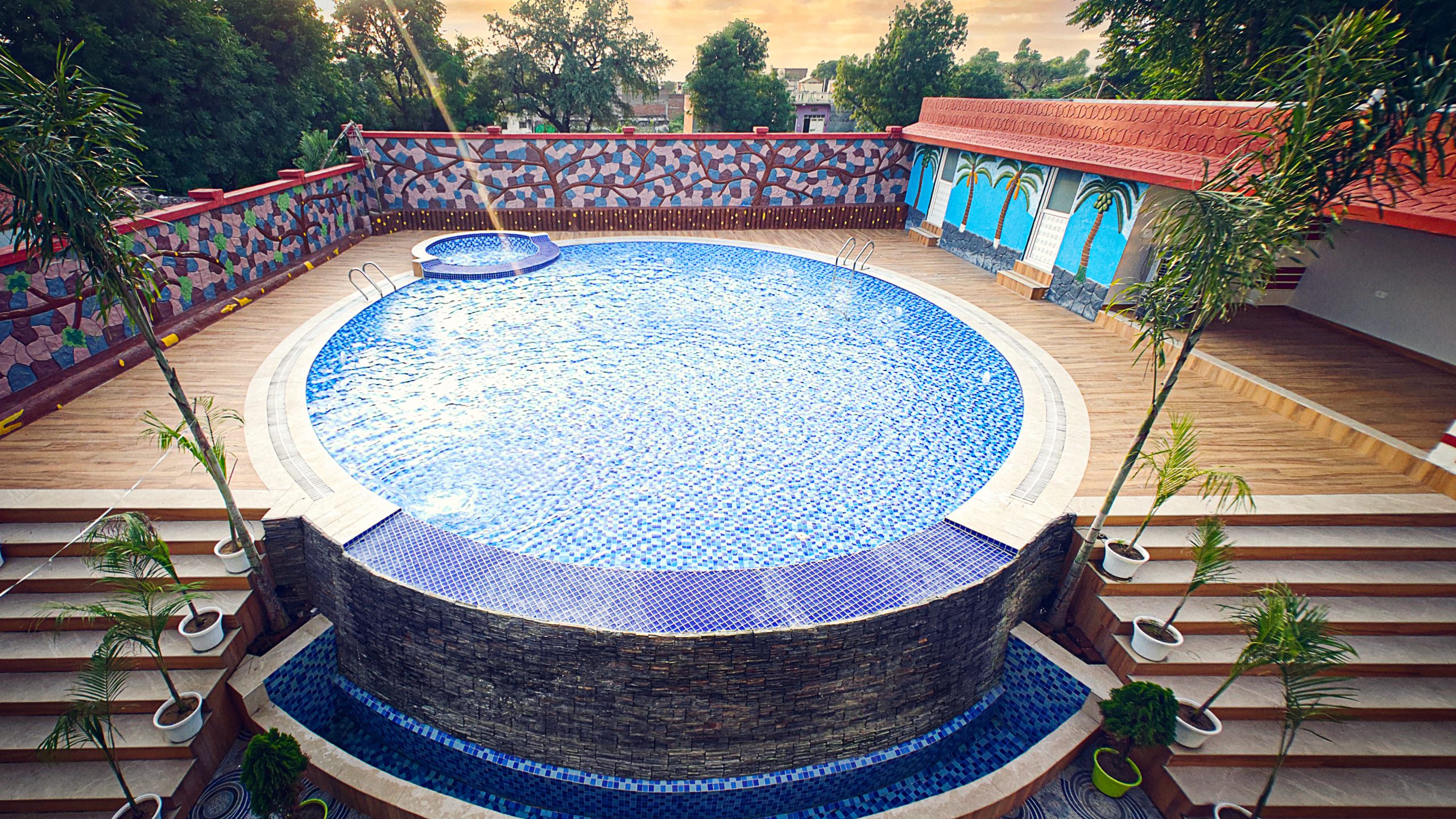 Unwind in our stunning pool with breathtaking views, just steps away from your elegant suite.